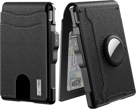 AirTag Wallet – Handmade Leather, Carbon Fiber Texture, Aluminum Pop-Up, RFID Secure Card Holder